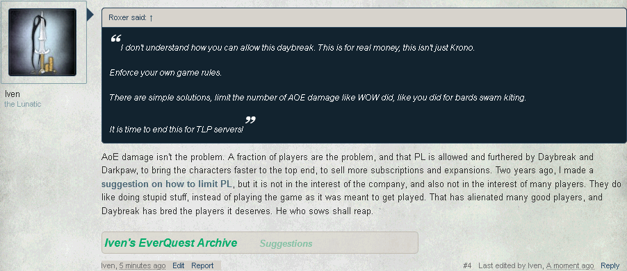 2024-07-08 - I'm done, power leveling ruined TLP server. I've cancelled my account, daybreak this is the end - 4 (Whole thread deleted).png 2024-08-28 09:34 75K
